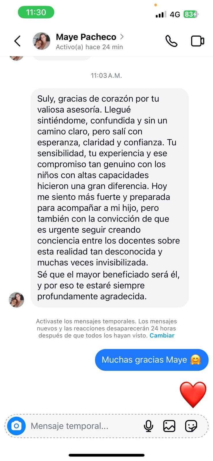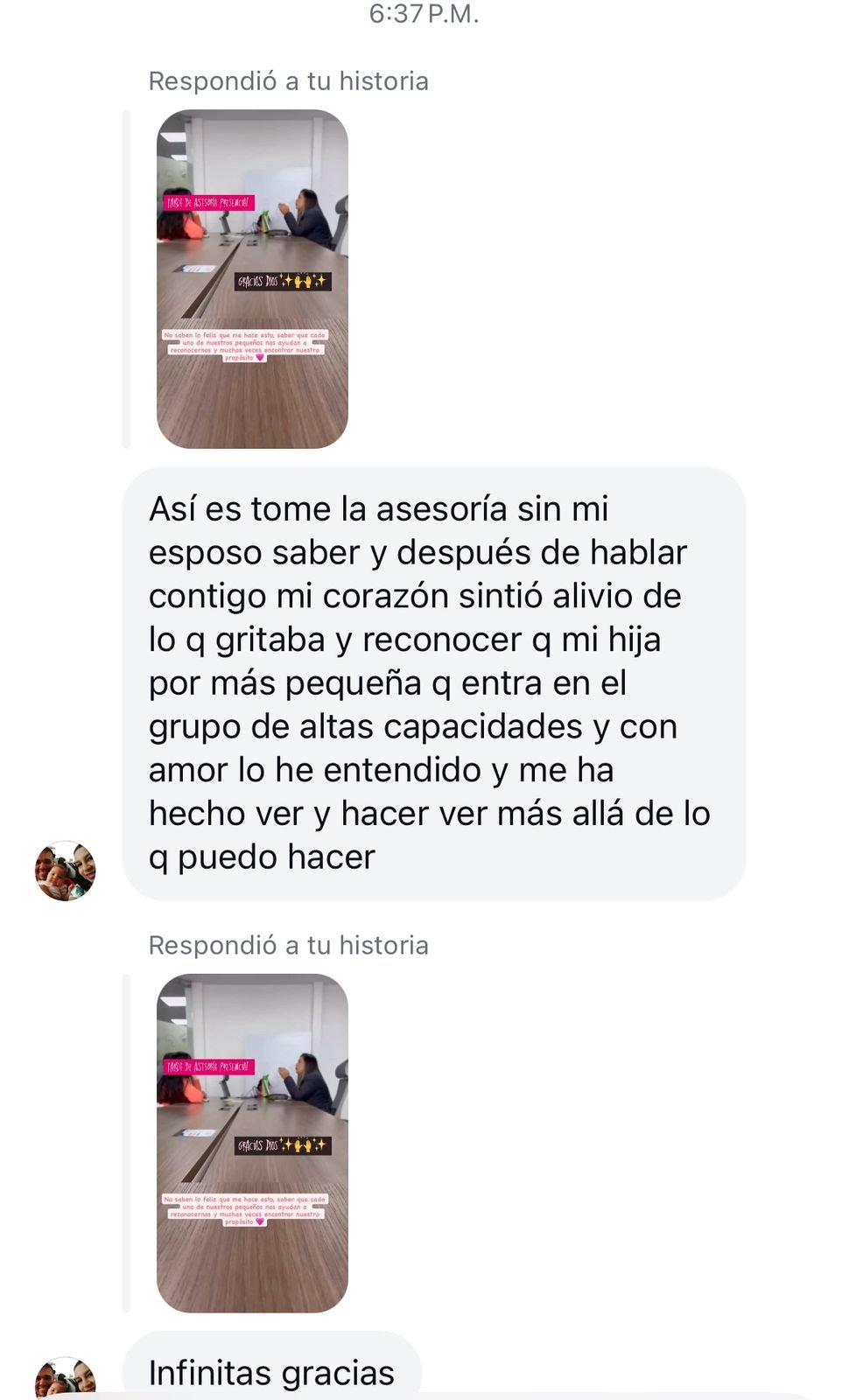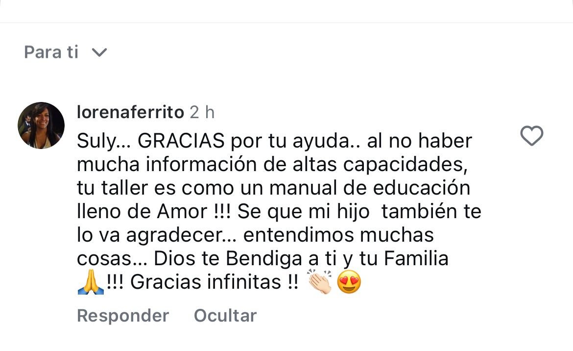 Ese viaje me impulsó a cambiar de rumbo. Hoy soy coach especializada en altas capacidades, educación inclusiva e inteligencia emocional, y curso una Maestría en Altas Capacidades e Inclusión. Mi propósito es claro: acompañar a las familias que, como la mía, sienten que tienen un gran tesoro en casa, pero no siempre saben cómo cuidarlo o hacerlo brillar.